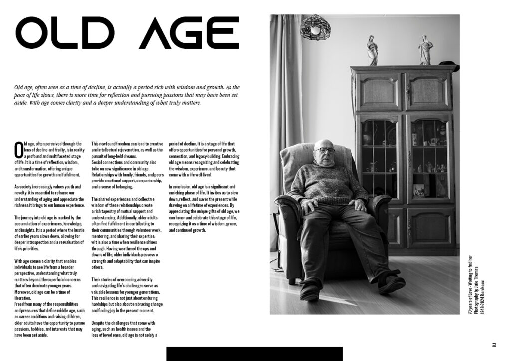 Réalisation d’un magazine d’art spécialisé en photographie «Photography» mettant en valeur l’exposition «Old Age» (Vieillesse) et mettant en avant le travail du noir et blanc.